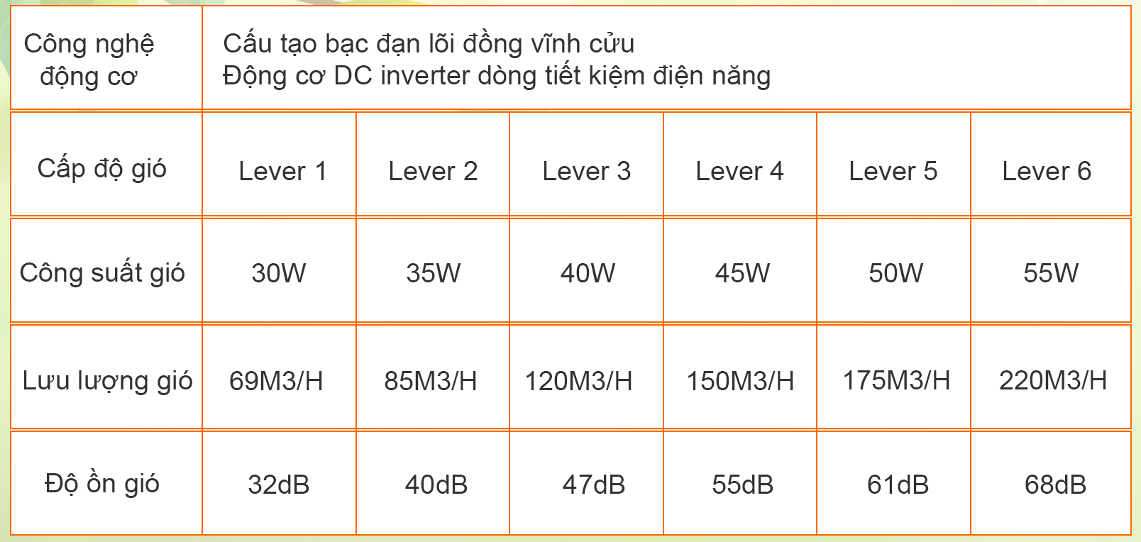 Sử dụng công nghệ Direct Current Motors cùng cấu tạo Bạc đạn lõi đồng vĩnh cửu – 100% dây đồng giúp bộ chuyển động vận hành chính xác tốc độ khởi động, dừng lại và đảo chiều. Thời gian để khởi động lại qua các cấp độ gió cực kỳ nhanh chóng.
