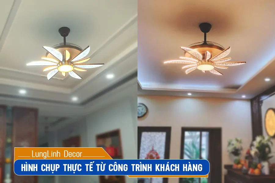 Tại LungLinh Decor chúng tôi có cho mình đội ngũ kỹ thuật chỉn chu, thân thiện và được đào tạo chuyên nghiệp. Bạn có thể liên hệ để được tư vấn cũng như đặt lịch lắp đặt mẫu quạt trần cánh xếp hiện đại – Mã G518 này theo các thông tin dưới đây: