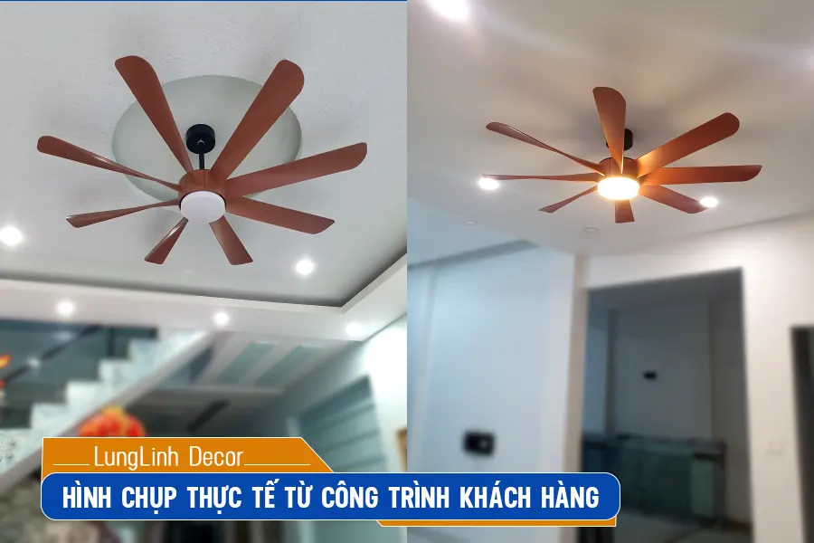 Gợi ý: Mẫu quạt trần này phù hợp lắp cho những ngôi nhà có độ cao trần từ 3m6 tới dưới 6m. Không gian rộng trên 20m2. Phần ti quạt sẽ được kỹ thuật viên điều chỉnh cho cân đối lúc lắp đặt.