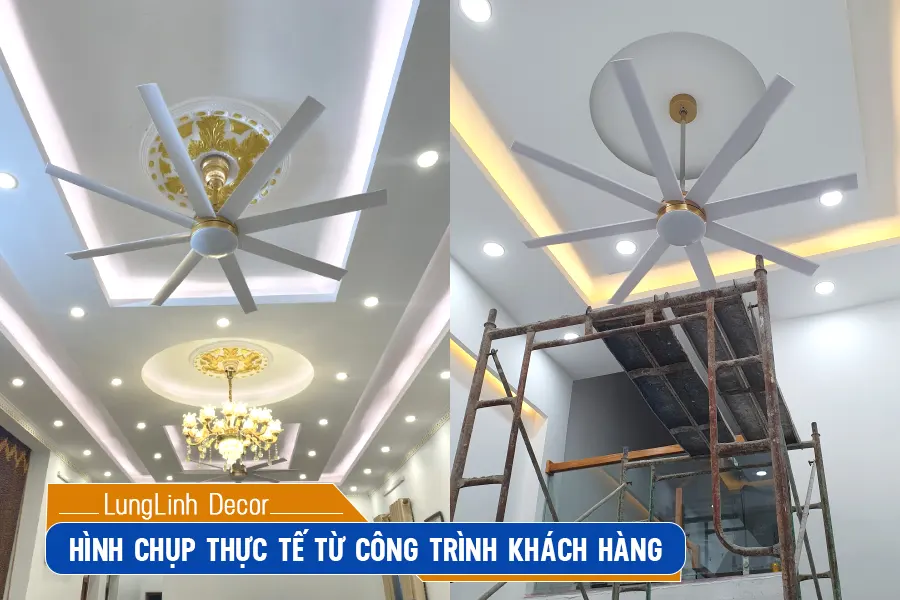 Gợi ý: Mẫu quạt trần này phù hợp lắp cho những ngôi nhà có độ cao trần từ 3m6 tới dưới 6m. Không gian rộng trên 20m2. Phần ti quạt sẽ được kỹ thuật viên điều chỉnh cho cân đối lúc lắp đặt.