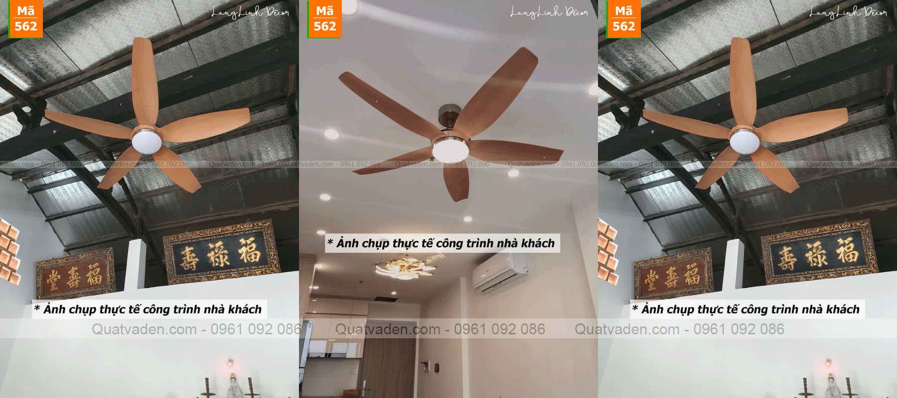Tại LungLinh Decor chúng tôi có cho mình đội ngũ kỹ thuật chỉn chu, thân thiện và được đào tạo chuyên nghiệp. Bạn có thể liên hệ để được tư vấn cũng như đặt lịch lắp đặt mẫu quạt trần hiện đại – Mã G562 này theo các thông tin dưới đây: