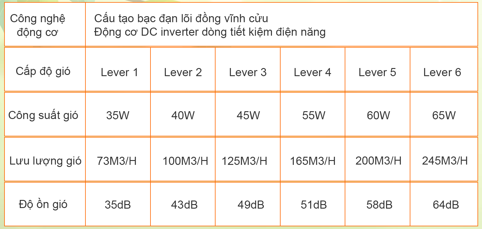 Sử dụng công nghệ Direct Current Motors cùng cấu tạo Bạc đạn lõi đồng vĩnh cửu – 100% dây đồng giúp bộ chuyển động vận hành chính xác tốc độ khởi động, dừng lại và đảo chiều. Thời gian để khởi động lại qua các cấp độ gió cực kỳ nhanh chóng.